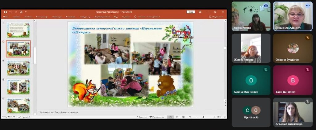 Практичні психологи Галак Вікторія (Липовецький заклад дошкільної освіти №1 Липовецької міської ради Вінницького району Вінницької області) та Комар Ганна (Липовецький заклад дошкільної освіти №2 Липовецької міської ради Вінницького району Вінницької області) представили свій досвід роботи на тему: «Форми, методи та прийоми використання казок у роботі фахівців психологічної служби з дітьми дошкільного віку, їх емоціями, страхами та поведінкою» та надали практичні матеріали для використання у роботі фахівців.