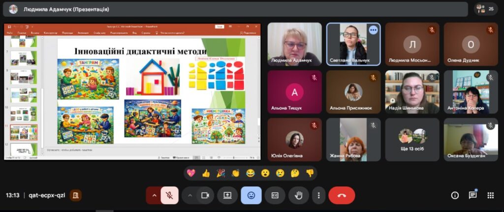 Шинькова Надія, практичний психолог ЗДО «Райдуга» (ясла-садок) селище Піщанка, поділилася з колегами використанням дієвих методик корекційної роботи через гру з дітьми з ООП: сенсорна гра з пластиліном, манною крупою, використання липучих кубиків, нейроігор, графомоторики, паличок Кюізенера, вправ на розвиток емоцій та соціалізацію дітей.